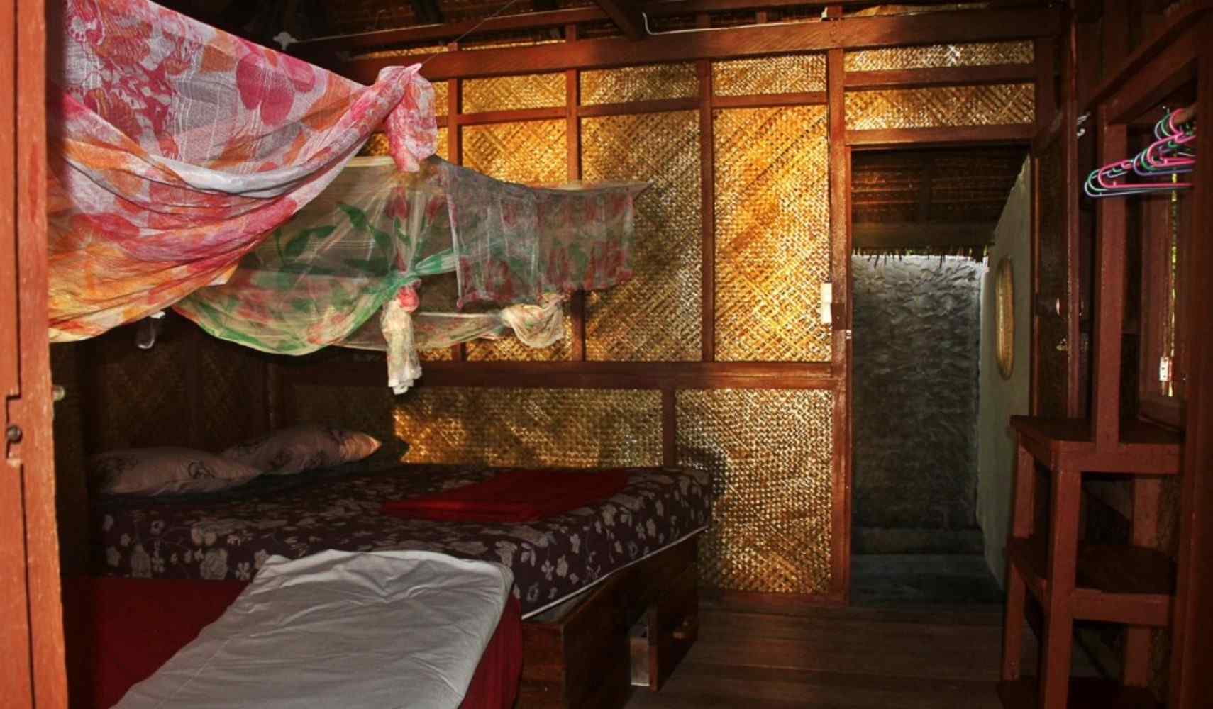 Deze huisjes liggen op een afgelegen plek aan de zuidkust van Padang. Een terrasje voor elk huisje met zicht op zee, een slaapkamer met 2-persoonsbed of 2 losse bedden en een open badkamer met westers toilet, wastafel en douche. Er is geen airco, maar de zeebries geeft in de avond en nacht verkoeling. Je kunt zwemmen en snorkelen voor de lodge. In het restaurant worden smakelijke maaltijden geserveerd. Deze zijn inbegrepen in de prijs, want er zijn geen andere restaurants in de omgeving.