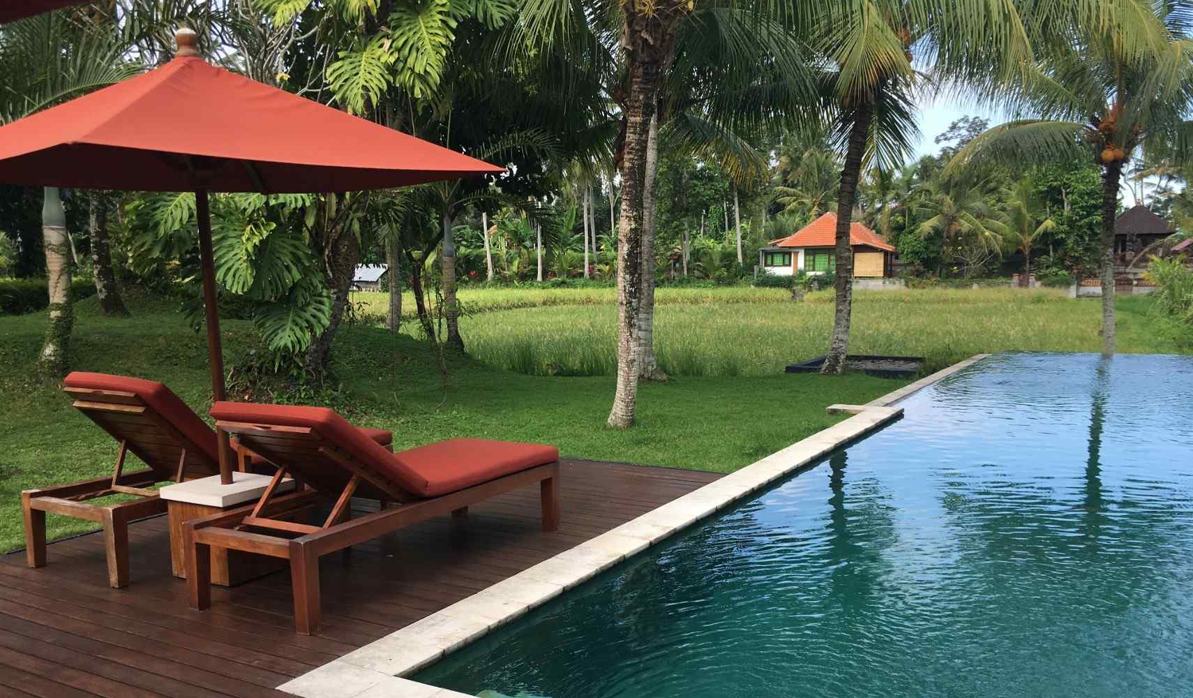 Villa Sabandari is een mooi, kleinschalig hotel, prachtig gelegen aan de rand van Ubud. In ongeveer twintig minuten loop je naar Ubud Palace, maar het hotel heeft ook gratis transport. Een fijne plek om bij te komen, na een dag rondlopen in Ubud. In de omgeving kun je ook mooi wandelen en het is ook goed vertoeven aan het zwembad.