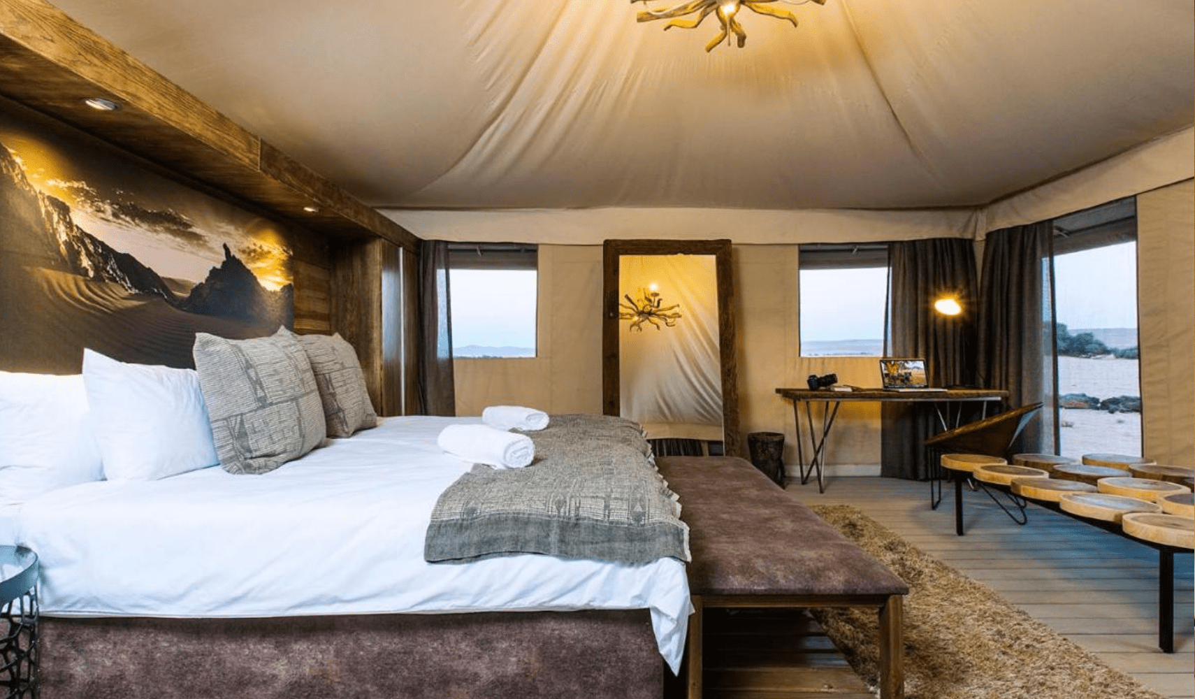 Dead Valley lodge ligt in het Namib Naukluft Park, naast de weg die naar de wereldberoemde Sossusvlei-duinen en “Deadvlei” leidt. De lodge heeft vrijstaande, luxe tentchalets met airconditioning, aangrenzende badkamer en een panoramisch uitzicht op de Namib-woestijn met prachtige rode zandduinen, ruige bergketens en dorre woestijnsavannes.