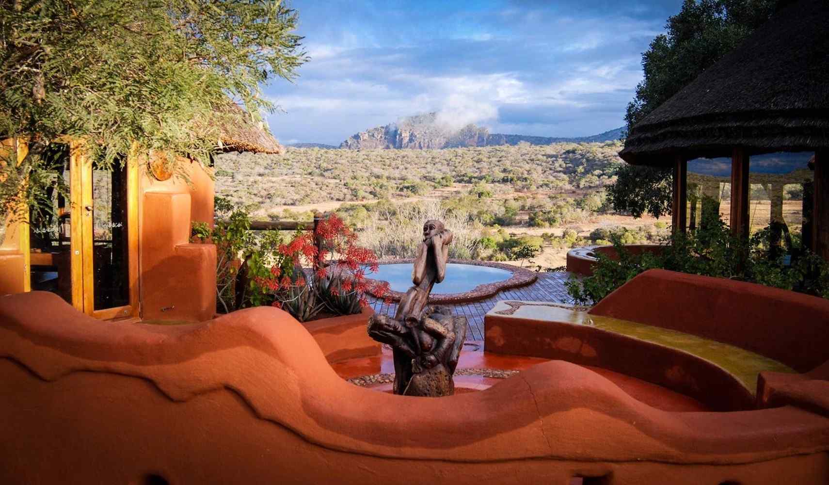 De mooie Venda Art Lodge ligt hoog op een plateau in het Soutpansgebergte, in de wildernis van Leshiba, en is een sfeervol nagebouwd Venda dorpje. De lodge heeft een restaurant, loubge, winkeltje en een zwembad met zonnedek. Overal in de lodge zie je de bijzondere Venda kunst hangen en staan, de vriendelijke medewerkers vertellen je graag van alles over de rijke Venda cultuur. Door de hoge ligging heeft de lodge mooi uitzicht op de Duluni vallei en het wild dat graast en naar de waterpoel komt om te drinken. De kamers bevinden zich in rondavels, de typisch afrikaanse huisjes met rieten dak. De kamers liggen rond een binnenplaats en hebben elk een eigen badkamer.