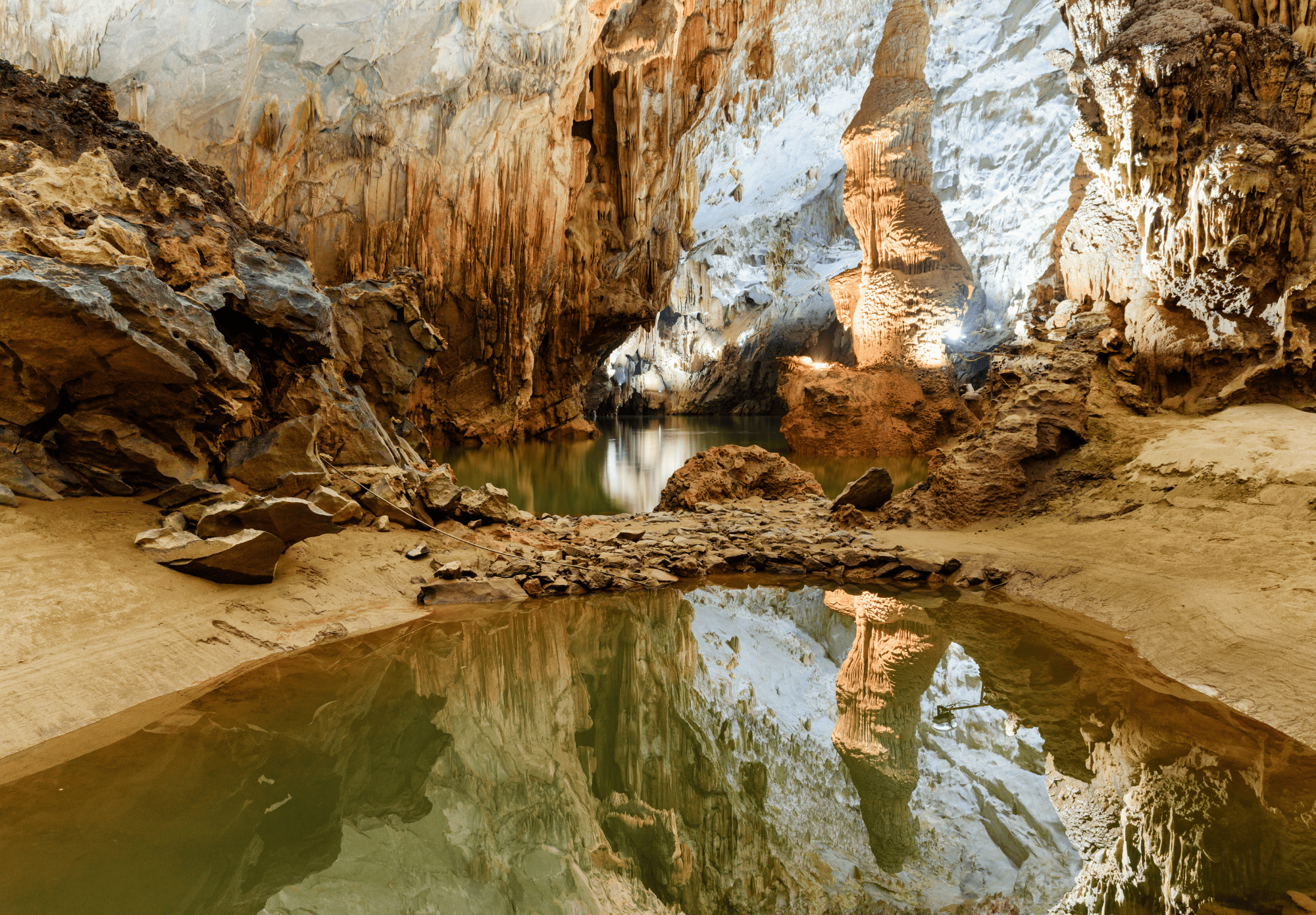 Na de vroege aankomst in Dong Hoi worden jullie opgehaald door een chauffeur en naar het resort in Phong Nha gebracht. Na een ontbijt en een moment van rust gaan jullie Paradise Cave bezoeken, een van de mooiste grotten in Vietnam. Daarna is er tijd voor de lunch en aansluitend gaan jullie naar de Dark Cave, waar je kunt ziplinen, zwemmen in de rivier en een modderbad in de grot kunt ervaren. Vergeet je badkleding dus niet mee te nemen! Na deze activiteiten keren jullie terug naar het resort in Phong Nha , waar je eventueel nog kunt kajakken.