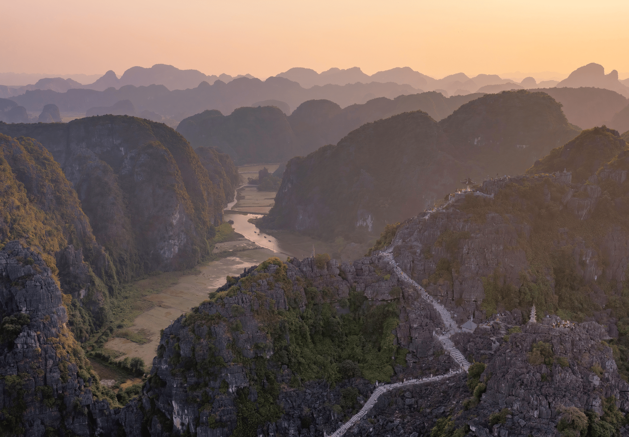 Dag 8: privé-transfer per auto met chauffeur naar Tam Coc, ’s middags beklimming van Mua Cave
