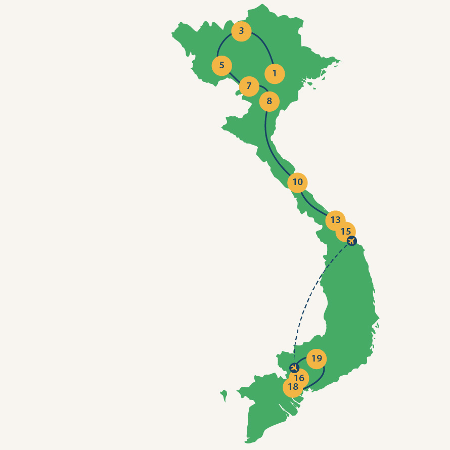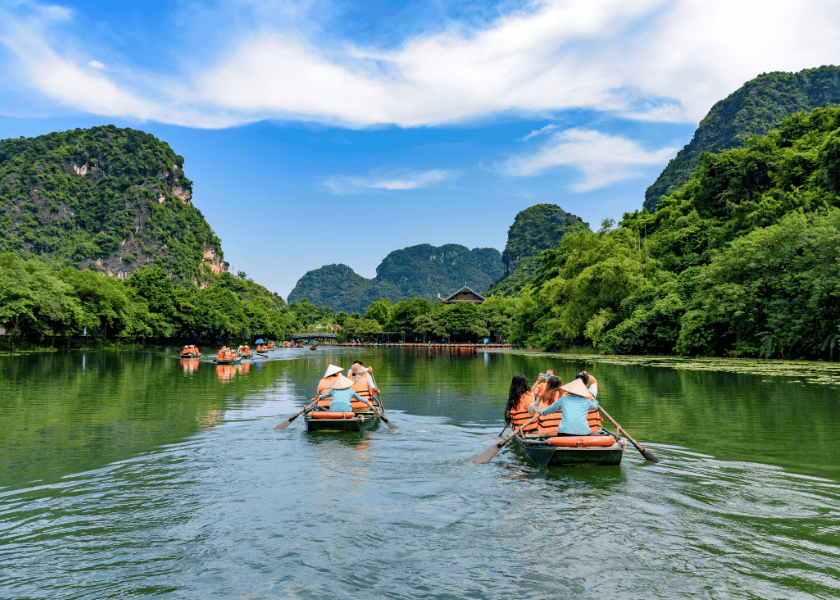 Deze ochtend maken jullie een boottocht door Trang An, waarbij je door verschillende grotten vaart. Als jullie geluk hebben, laat de schipper het toe om de roeispanen uit te lenen, zodat je zelf ook een stukje de boot kan laten varen. Na deze boottocht bezoeken jullie de Bai Dinh-pagode, bekend om zijn bijzondere architectuur. Aan het einde van de middag brengen jullie een bezoek aan de Hoa Lu-tempels om meer te leren over de geschiedenis van Vietnam. Jullie overnachten weer in Tam Coc.