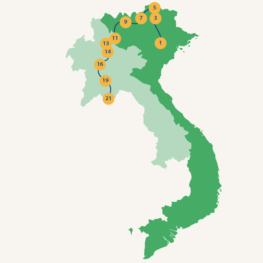 Tijdens deze reis ontdek je alle hoogtepunten van Noord-Vietnam en Laos. Ervaar de cultuur van Vietnam, geniet van de prachtige bergketens die de grens vormen met China en schiet de mooiste foto’s in Laos tijdens een fietstocht door Luang Prabang. De route die jullie maken in Vietnam wordt ook wel de Ha Giang loop genoemd.