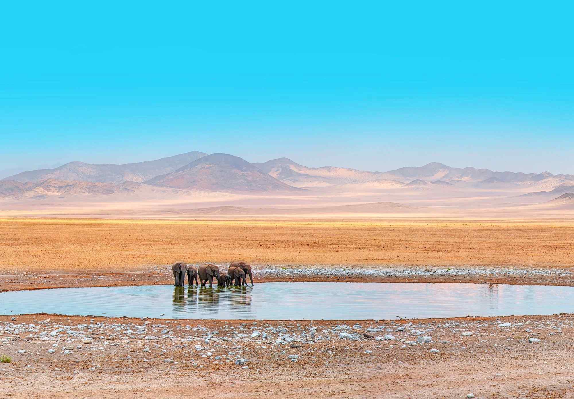 Vandaag begint de rondreis: jullie reizen richting het noorden naar Damaraland, waar avontuur en natuurschoon op je wachten. Het is een prachtige rit van ruim 6 uur door bergachtig landschap met onderweg uitzicht op uitgestrekte savannes. In Damaraland zie je de eerste typisch Namibische vergezichten van rood woestijnzand, stekelige versteende bomen en hoge bergpieken. Je slaapt deze nacht in een bijzondere lodge; met een beetje geluk wandelen de olifanten langs terwijl je geniet van je eerste sundowner na deze zanderige reisdag door de woestijn.