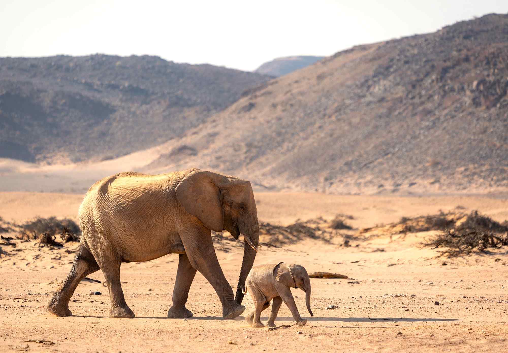 Jullie verblijven deze twee nachten in een prachtige uitvalsbasis voor activiteiten in Damaraland. De lodge ligt aan de voet van de Brandberg, de hoogste berg van Namibië. Je kunt prachtig wandelen in de omgeving, ga bijvoorbeeld op pad met een gids naar de beroemde White Lady rotsschildering, een uniek bewaard prehistorische kunstwerk. De meest populaire activiteit hier is de desert elephant drive, een game drive waarbij je op zoek gaat naar de zeldzame woestijnolifanten die hier leven. De route en het vertrekmoment zijn afhankelijk van het seizoen, want de olifanten trekken rond in gebied. Tussendoor kun je heerlijk ontspannen bij het zwembad met uitzicht op het gebergte en wellicht de zonsondergang over de woestijn!