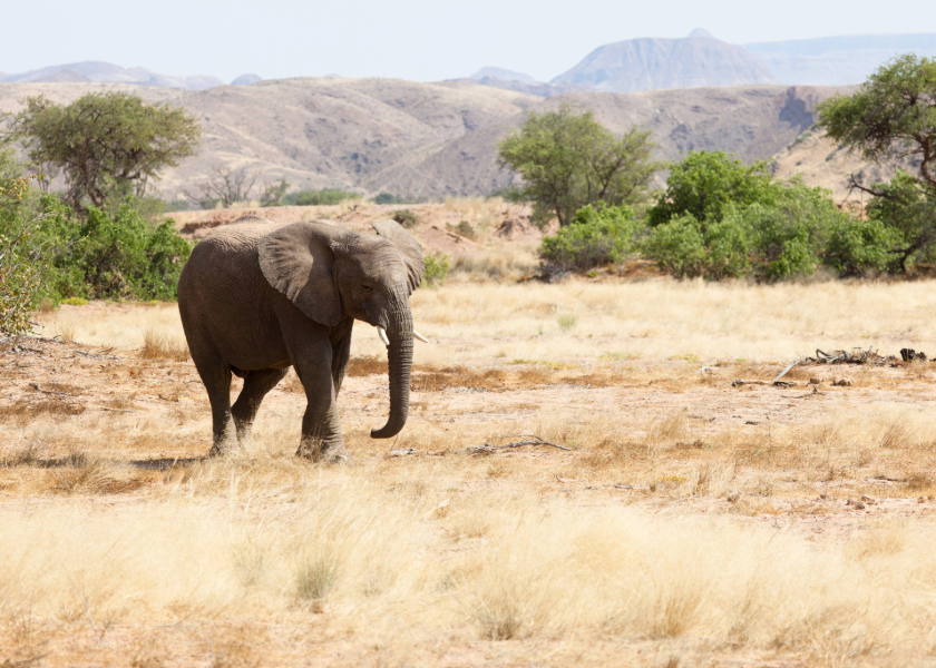 Vandaag vervolg jullie de reis, verder Damaraland in, een gebied dat bekendstaat om zijn woestijnvlaktes, droge rivierbeddingen en ruige bergen. De rit duurt ongeveer 4 tot 5 uur, afhankelijk van de wegomstandigheden; onderweg kom je langs kleine nederzettingen waar je kunt stoppen om foto’s te maken en de stilte van de natuur te ervaren.  De komende twee nachten verblijven jullie in een sfeervol tented camp aan de oevers van een droge rivierbedding, waar de mooie safaritenten verscholen onder enorme oude Mopane-bomen staan.
