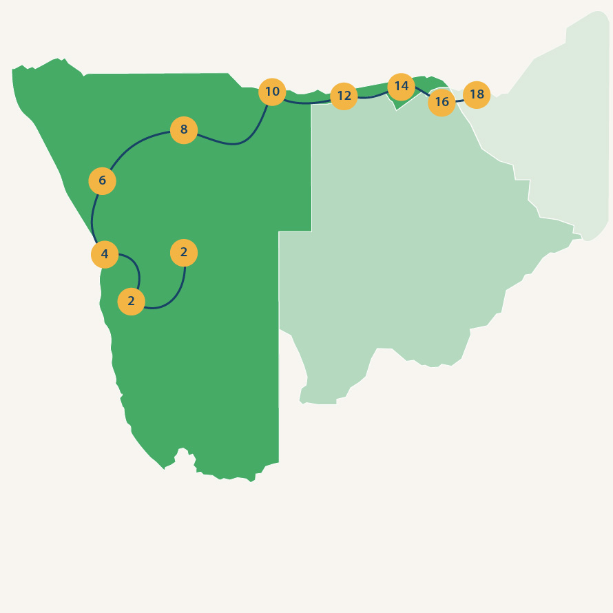 Tijdens deze selfdrive van Windhoek naar de Victoriawatervallen reis je dwars door de woestijn, door de delta en door Afrikaanse bush. Je staat oog in oog met olifanten, slaapt onder de sterren en eindigt bij een van de grootste natuurwonderen van Afrika. Deze rondreis combineert avontuur, afwisseling en volop natuurschoon.