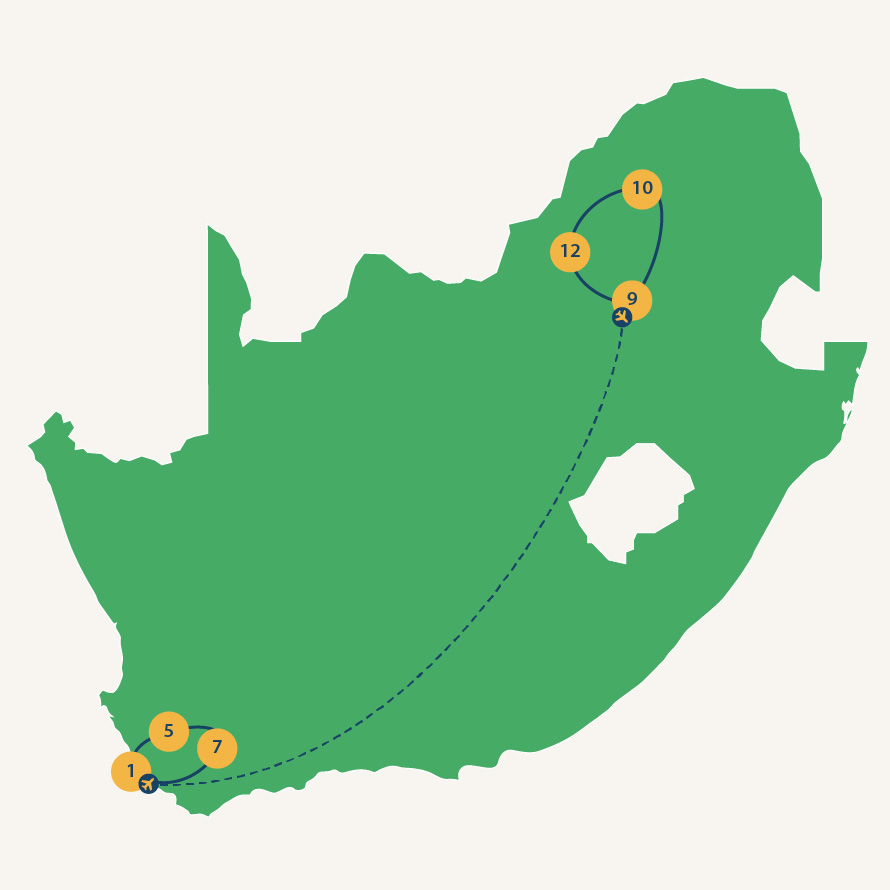 Tijdens deze familiereis ontdek je in een rustig tempo het malariavrije zuiden en noorden van Zuid-Afrika. Je begint in Kaapstad en bezoekt de wijnvelden van Wellington en Robertson. Daarna ga je op safari in het wildrijke Waterberg gebied en het Madikwe wildreservaat. Een afwisselende reis met natuur, dieren, vrijheid en comfort, ideaal voor het hele gezin.